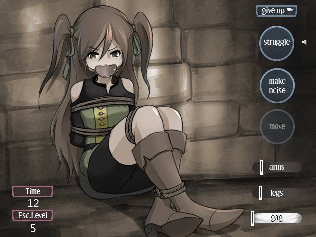 Now, you have a thing called escape level, which basically determines the times you can use struggle before a (real) game over. Now, don't do what I did, don't listen to Leroy when he says to train escaping at the beginning of the game. I went and tried all difficulty levels, every mechanic, etc., so I ended up with an escape level of 5. Very bad idea. With that my escape level was OP for the remaining of the game, even though I only did the mandatory escapes, I never failed any combat that you weren't supposed to fail. But on the other hand, as I mentioned, I didn't like the escape minigame, so it's probably better that way anyway. It's annoying, but neither interesting nor fun, you can just brute force your arm struggling and escape within the time limit, probably even on the lowest escape level, ignoring all these extra features. Getting your feet or mouth free is easier, but the bonus you get from them barely matters. Just take a look at this video: