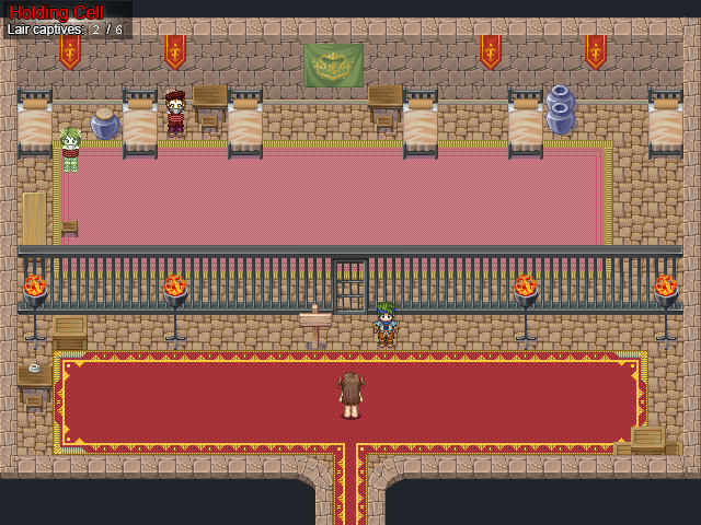 One room left you have the Holding Cell. There are a few "Capture Zones" on the world map, where you can capture girls, and returning to the lair you can sell them. However, it doesn't pay well, so it's going to be grindy to get any money here. (Actually, my biggest problem here, is that when you try to capture a girl, you have a QTE-like thing, and I fail it 9 times out of 10, which means I have to battle the girl. They're fucking weaklings, so it's not a problem, but it wastes time.)