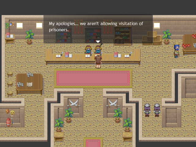 Finally, one more thing that you need to get used to is that you can't open your normal RPG Maker menu anytime, you can only open it when you're near a blue chest. This means that not only you can't save your game anytime, you can't even change gear or use your items when you're not next to a chest. It's not the end of the world, but you need to get used to it.