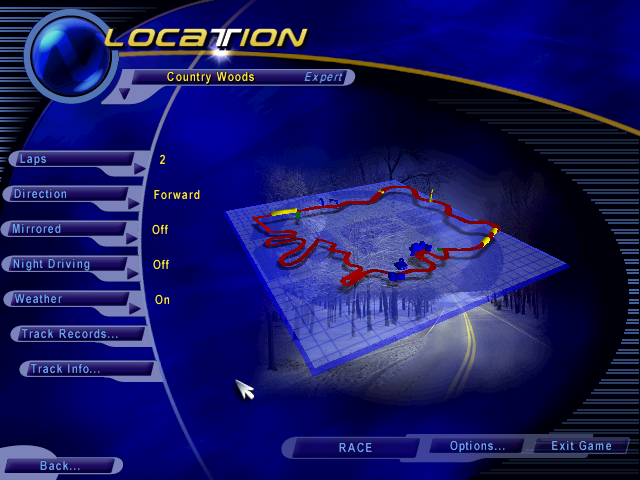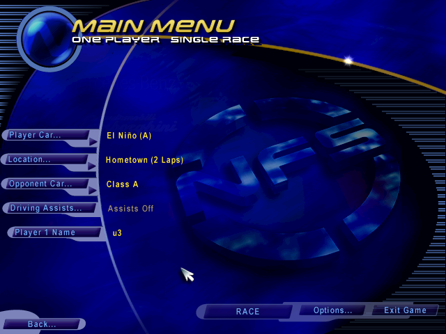 Single Race: the same as in NFS2. Select a track, your opponents (or lack of them), and go!