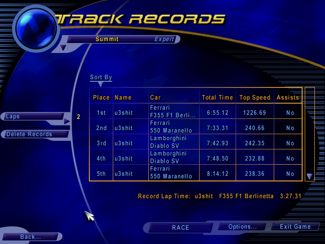 Unlike NFS1 and 2, the order of the tracks are fixed now, and you have to use the same car for all tracks (so it's like the knockout).