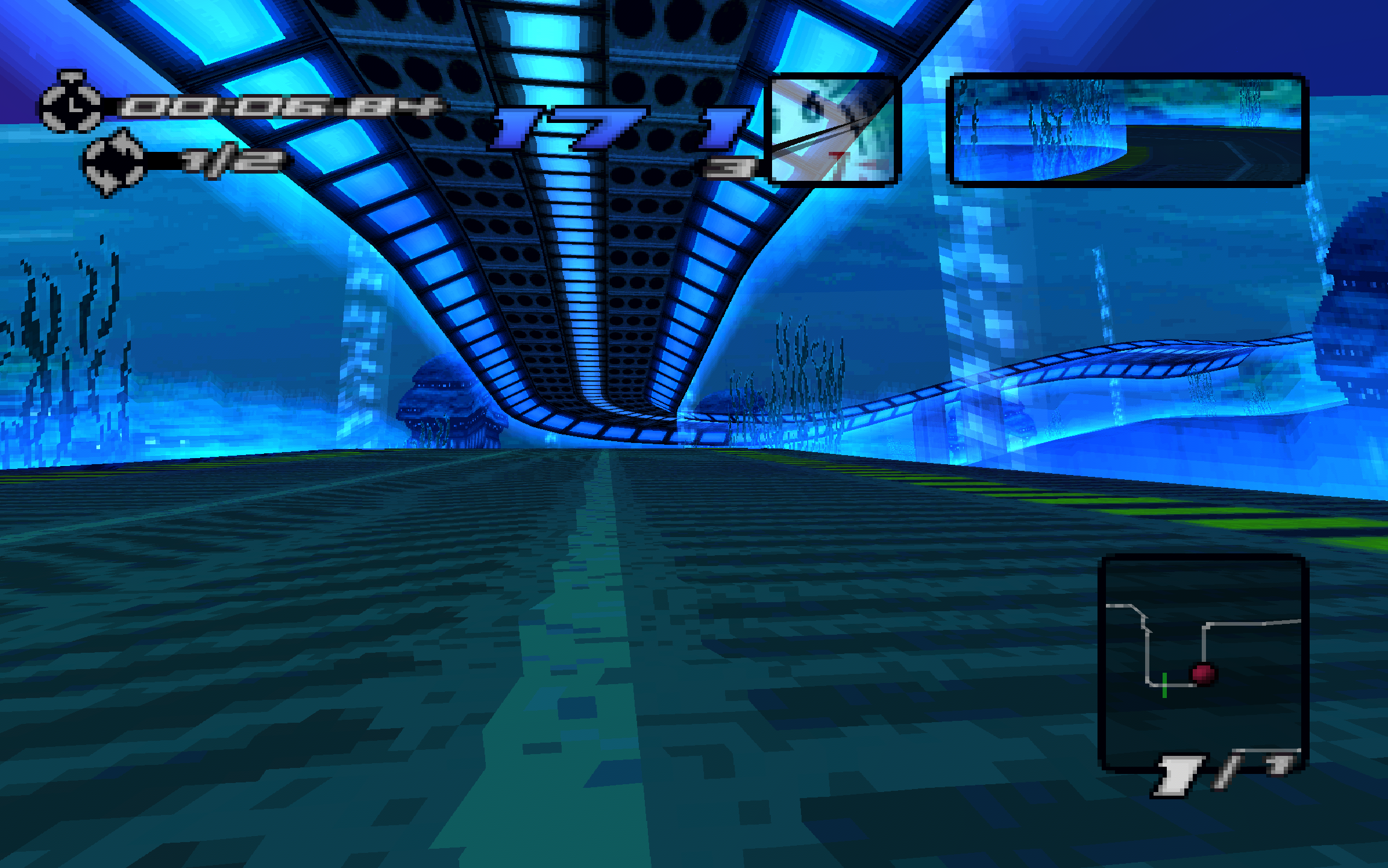 MNBEAM, a race on some kind of futuristic space station. Also, one of the better tracks, even if a bit unfair at places.