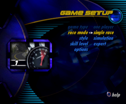 In all modes you can select between two styles, arcade and simulation. Learning from NFS2, I didn't even touch the arcade, maybe it wasn't a good idea. In all modes expect practice you can select a skill level between beginner and expert. Very gradual, yeah.