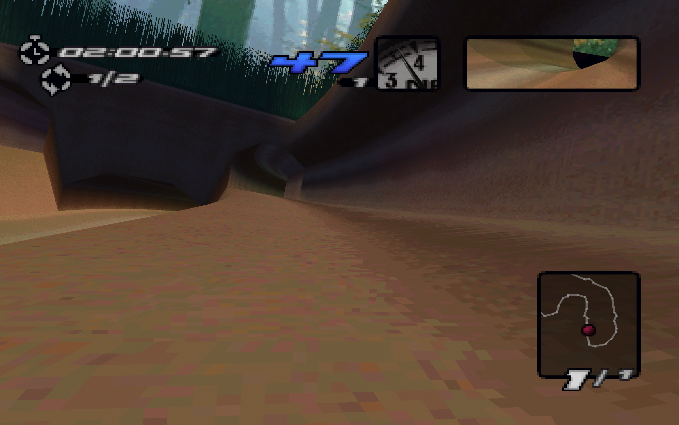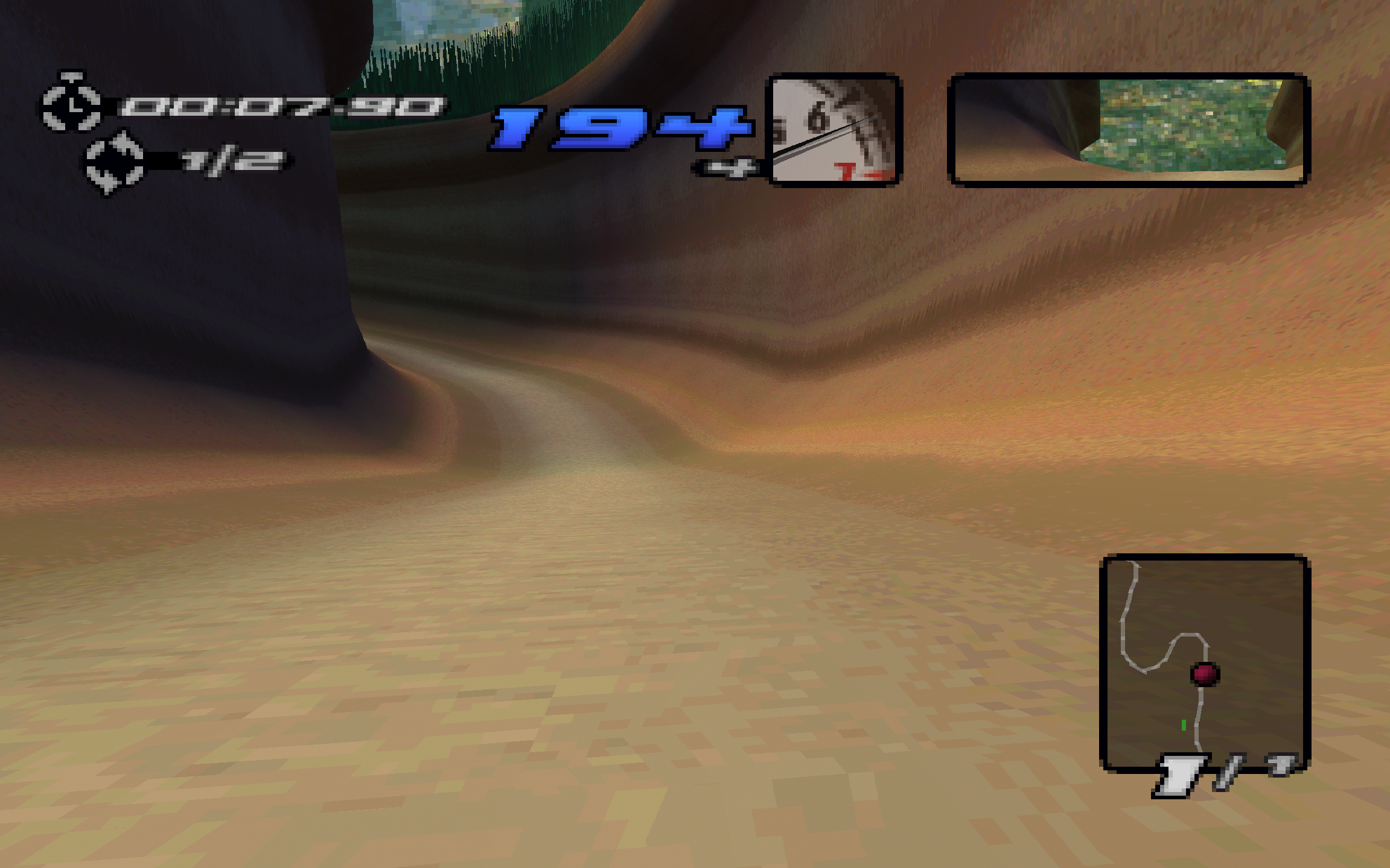 Notice how it has a Redrock Ridge as a loading screen, but with a different background than the real track. According to TCRF it's an early loading screen, but other than the finish line being shifted a little, it's the same track as the final.