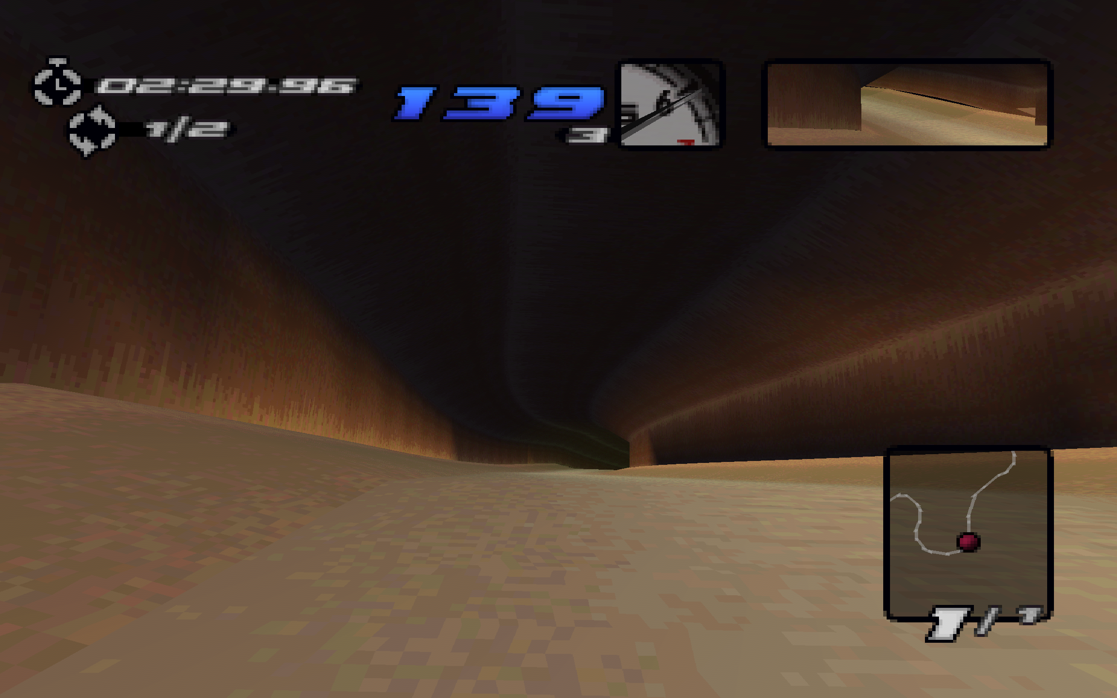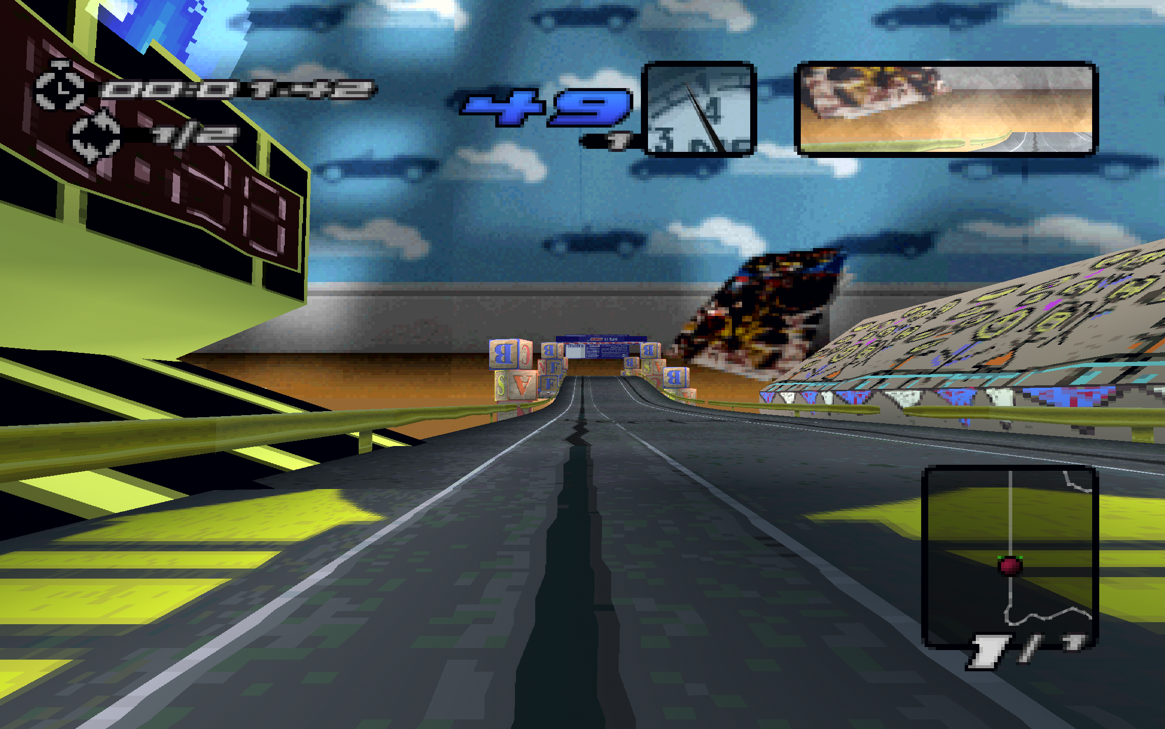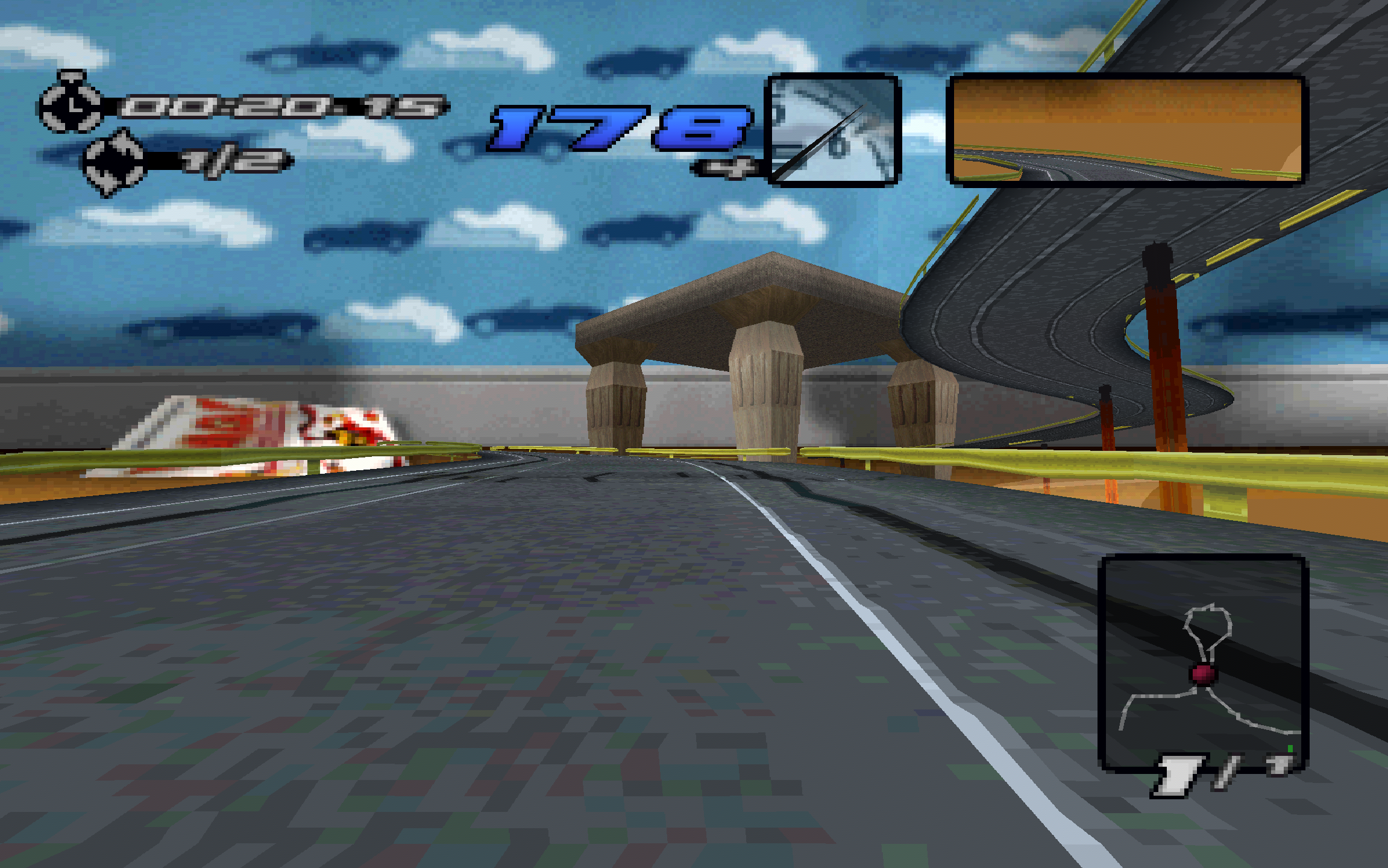 I'll try to summarize the differences here, this post is already too long. First is, handling. It handles wildly differently than the Windows version, to be honest, it's closer to NFS2. Simulation mode is pretty bad, your cars are almost accelerating faster than braking, and you have the weird binary grip-or-slide thing from NFS2, except it's a bit less noticeable and harder to do slide consistently. And when you fail to do it, you'll end up in the wall, because these cars need a kilometer to stop, and almost none of them have ABS (not even the super futuristic bonus car!). Oh, and usually all you need is a little nudge to flip your car over! At least, it lands on its tires after done spinning, most of the time.