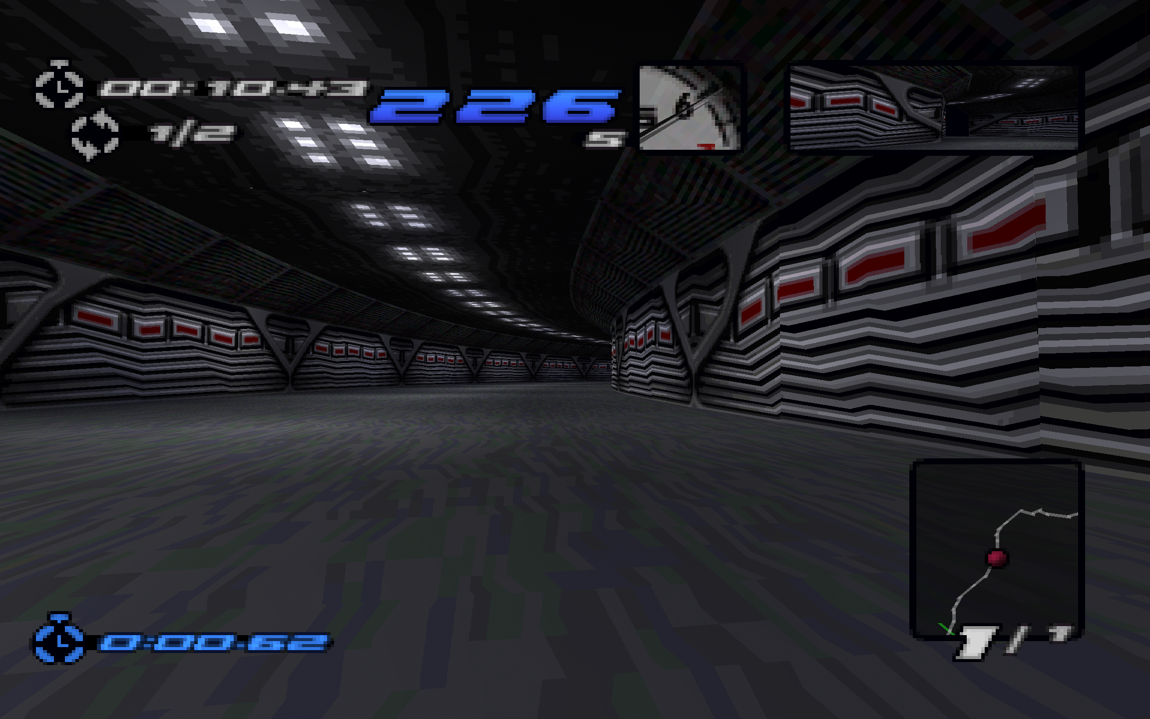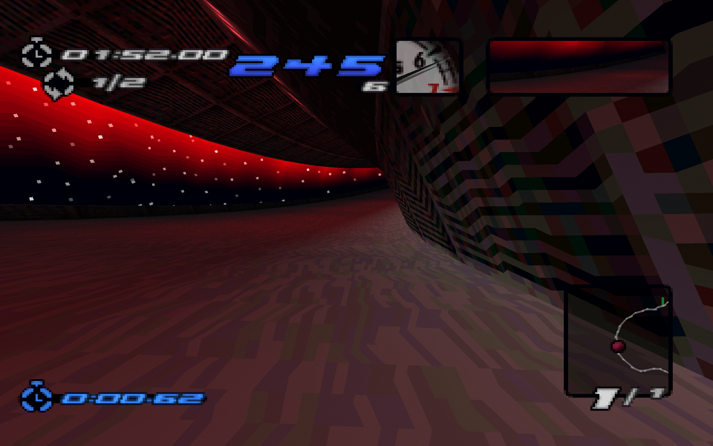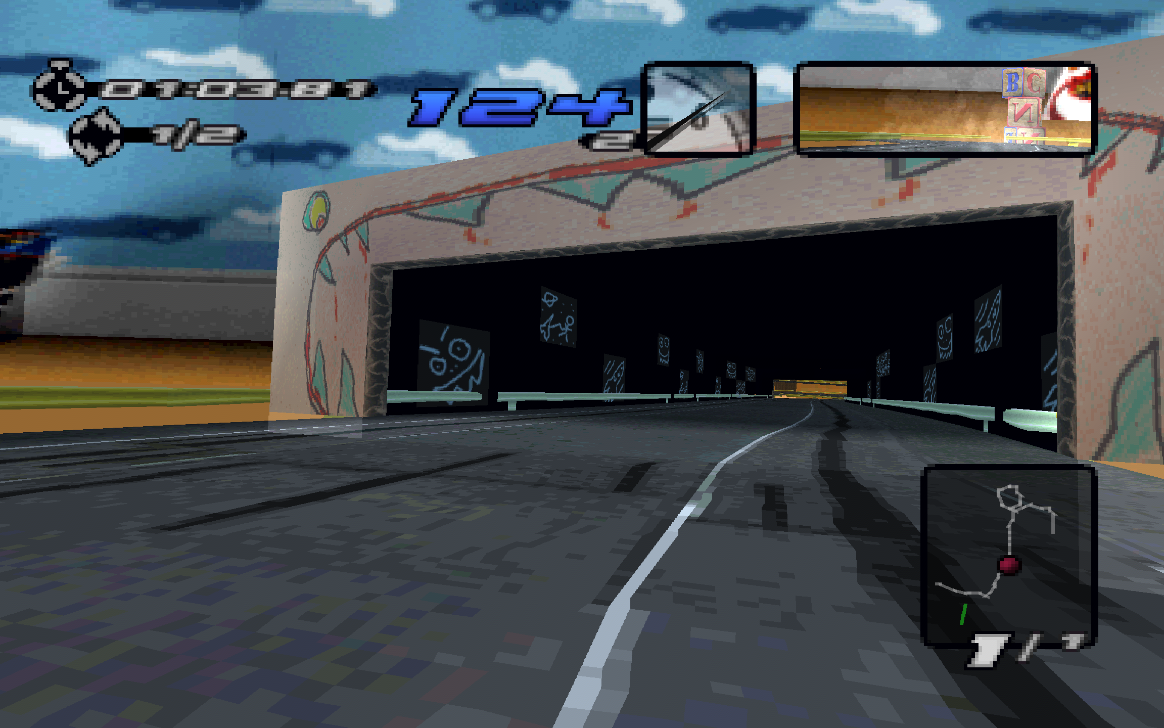 I'll try to summarize the differences here, this post is already too long. First is, handling. It handles wildly differently than the Windows version, to be honest, it's closer to NFS2. Simulation mode is pretty bad, your cars are almost accelerating faster than braking, and you have the weird binary grip-or-slide thing from NFS2, except it's a bit less noticeable and harder to do slide consistently. And when you fail to do it, you'll end up in the wall, because these cars need a kilometer to stop, and almost none of them have ABS (not even the super futuristic bonus car!). Oh, and usually all you need is a little nudge to flip your car over! At least, it lands on its tires after done spinning, most of the time.