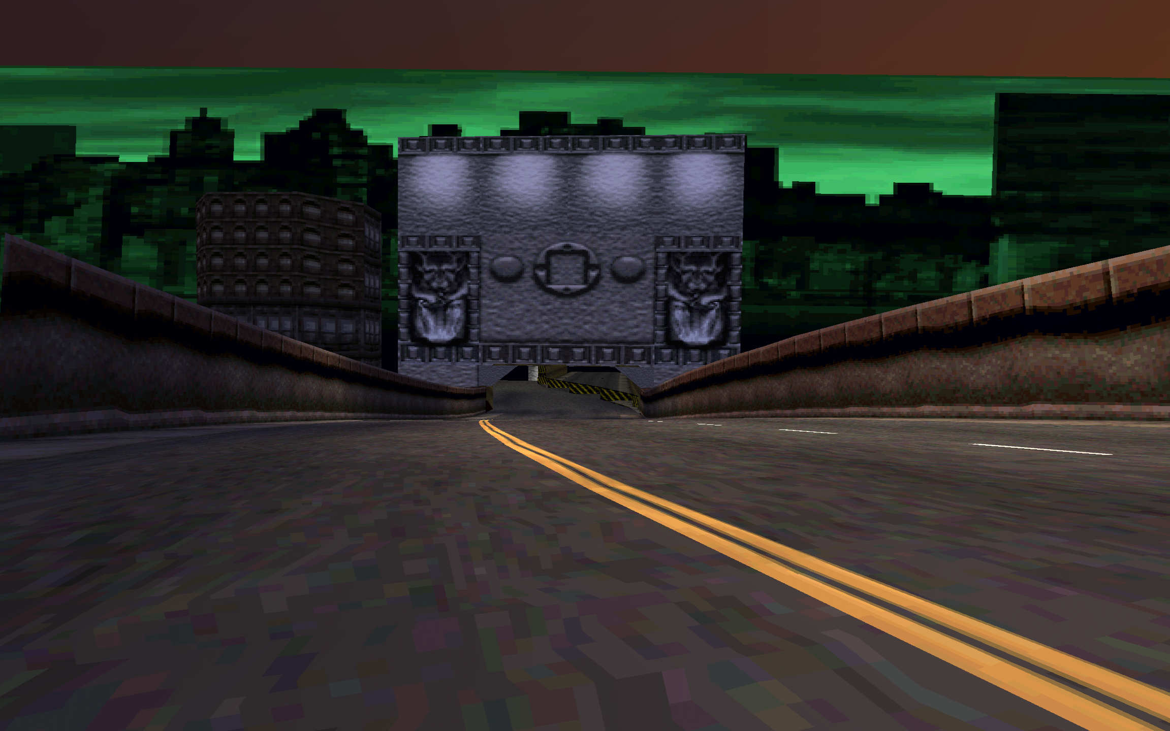 On the PlayStation version, it's just little a concrete barrier, while the Windows version has a massive wall. But note they didn't extend the wall until the bridge like thing at the top, a road behind is still visible. I always thought this is another shortcut, but of course I could never find the entrance to it... On TR02B, this part of the track is clearly unfinished, even though the parts shared with Empire City are almost at the final version everywhere else.