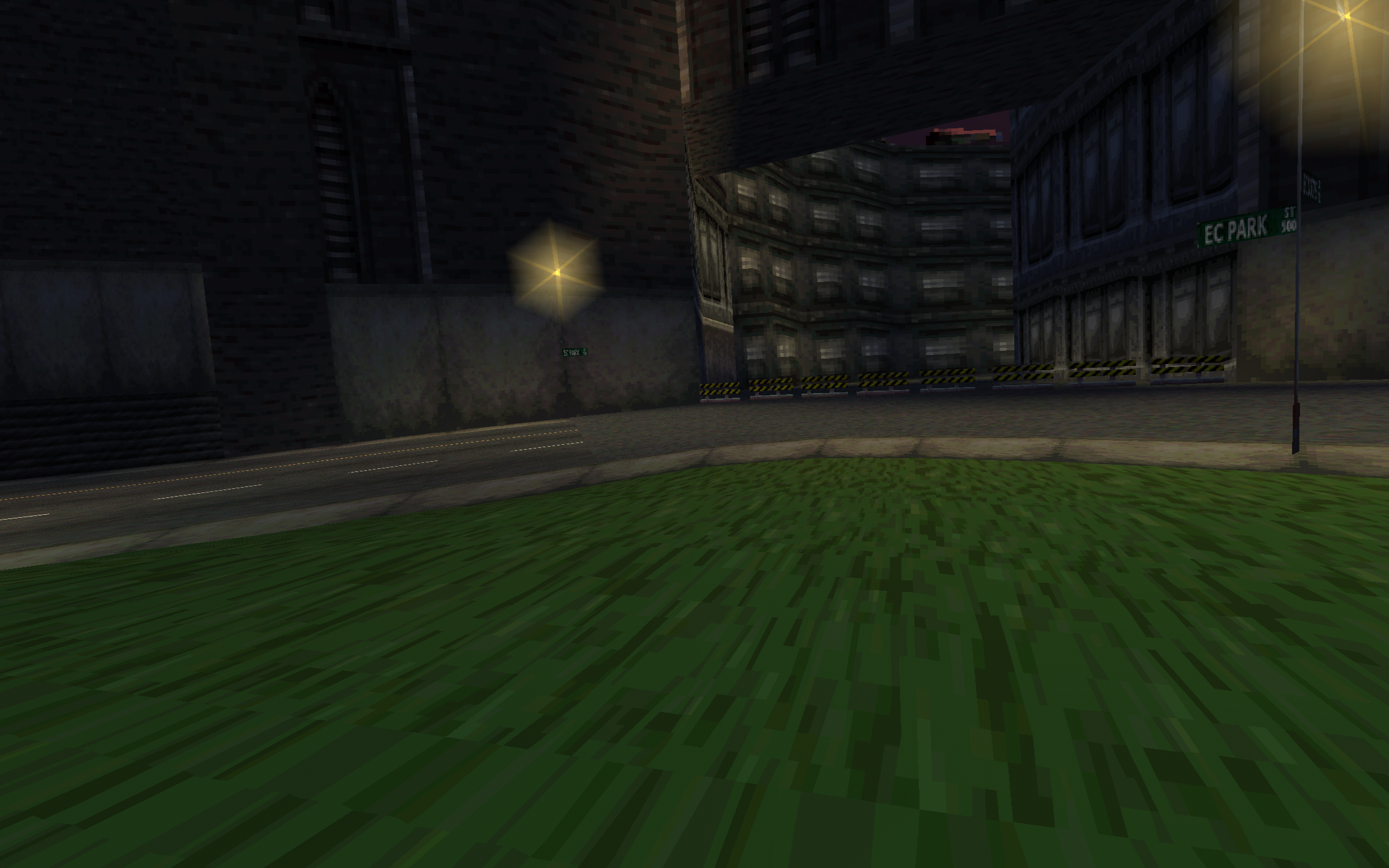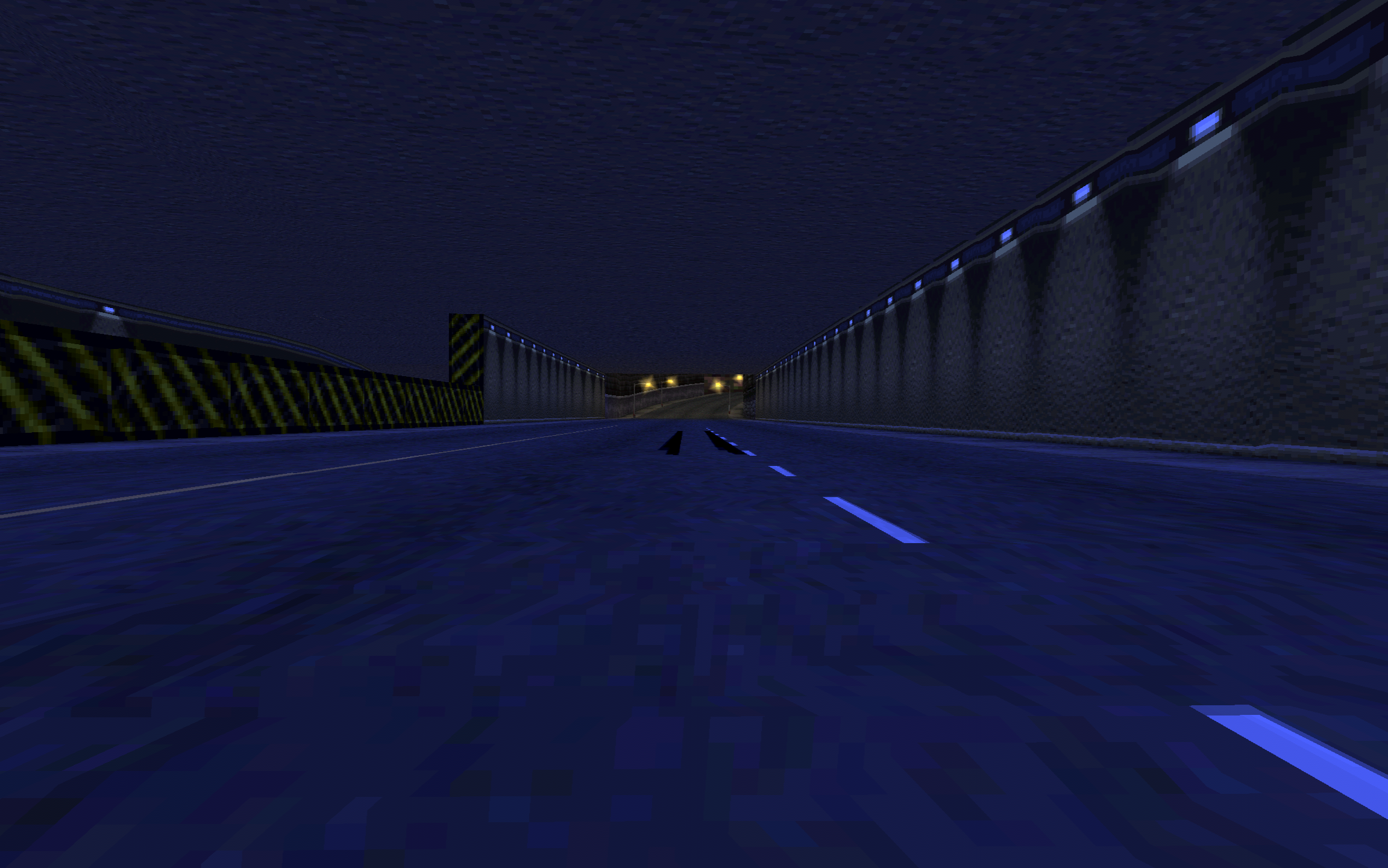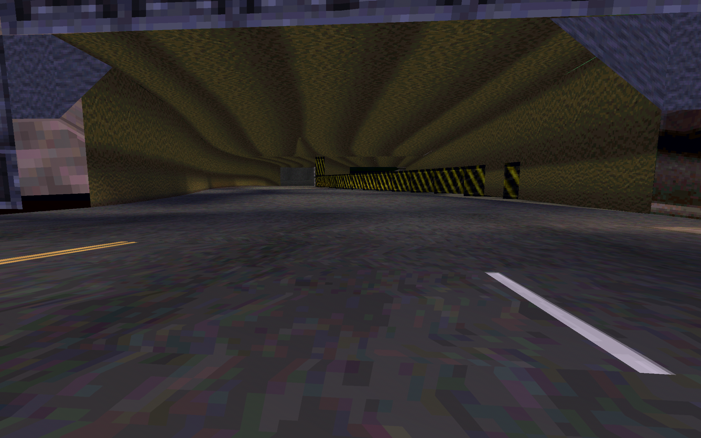 Notice in the PlayStation's version of Empire City, there's clearly a fork in the road, and the left branch is blocked. In the Windows version, it's a solid wall, without any hint of a road being there. No wonder never playing the PS version before I didn't think there's a pair of this track before seeing this info on the internet somewhere. Also, the tunnel is blueish in the PS version, while it has bright yellow lights on Windows. And TR02B's tunnel is quite different, with a different building texture, and no extra lighting inside (but it's still more yellowish).