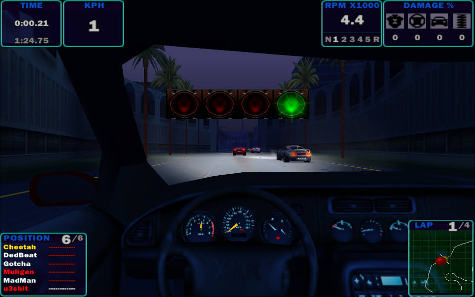 Tournament and Knockout: also pretty much the same as NFS3 (so you can manually save your state and restart races without messing around with your save files), except you have three difficulty levels here (Amateur, Pro, Champion). Completing the Champion one will unlock the rewards of the lower levels, so there's no point in playing on lower difficulties. Tournament unlocks all (non-police) cars in the game, while Knockout unlocks all(?) tracks. (The career mode unlocked the NFS3 tracks for me, so I only had to unlock the racetracks.)