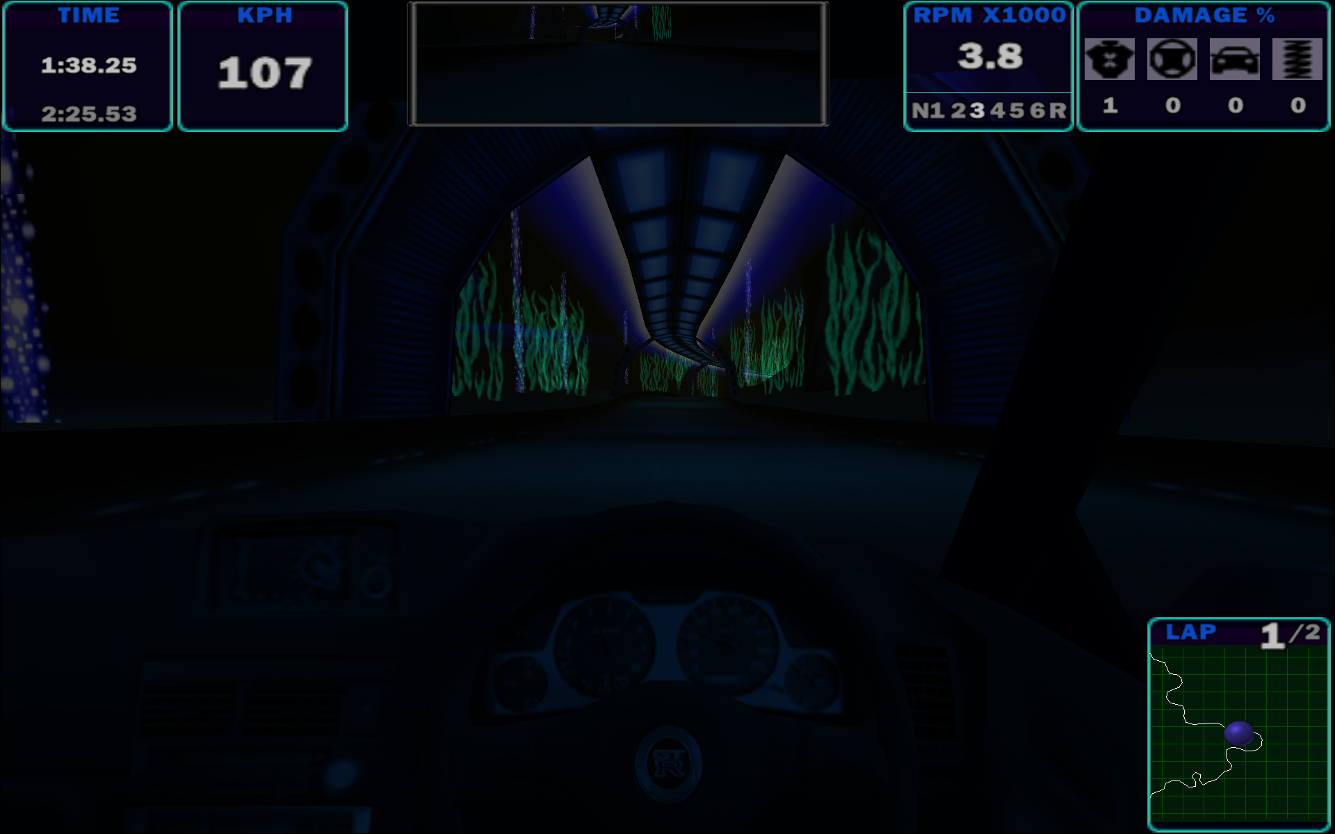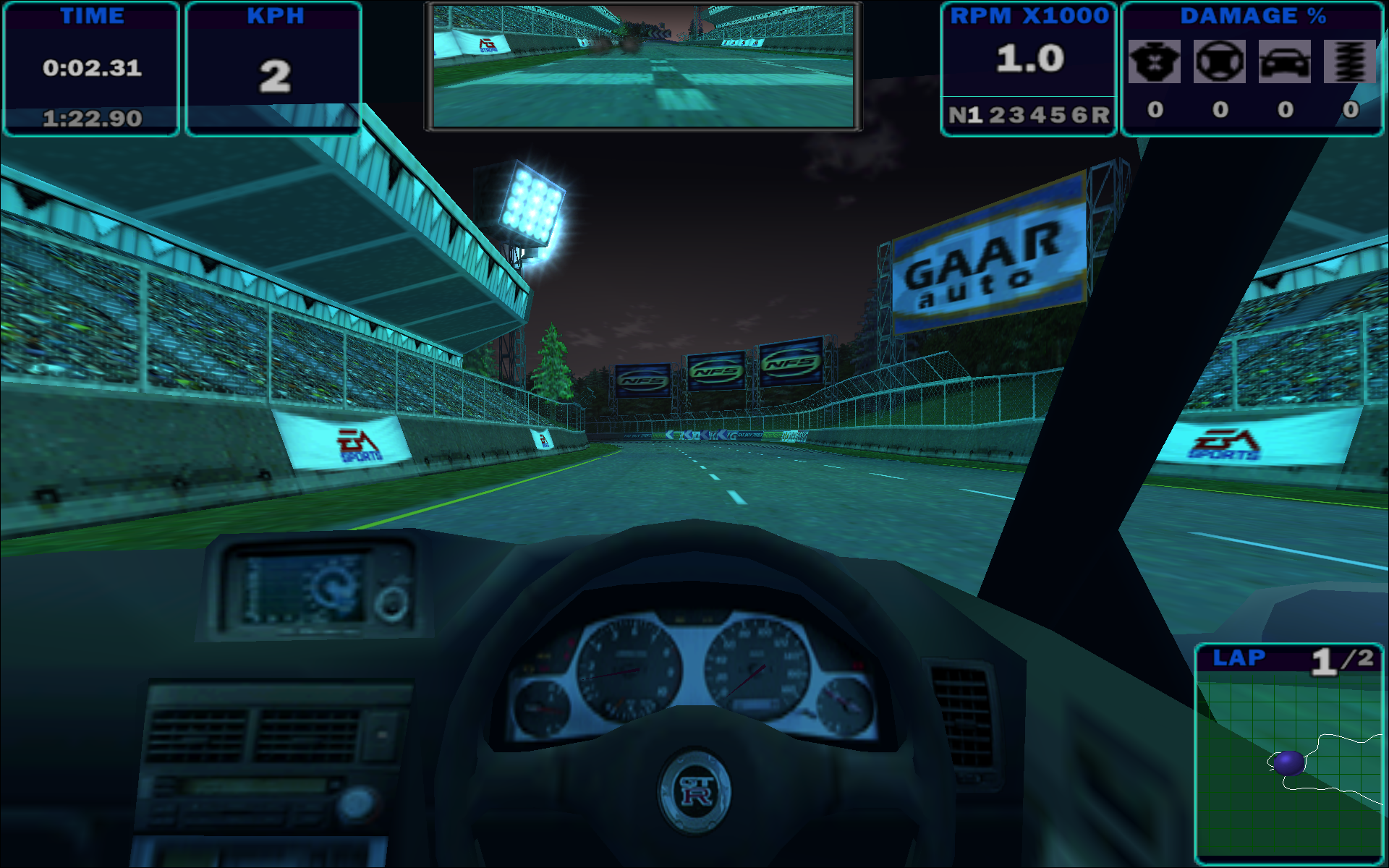 But if you go back to the night race replay, at least the car has a dashboard backlight, unlike in NFS3. Also, sorry for using Atlantica as a sample track both in the NFS3 and 4 article, this is what happens when more than a year passes between writing the two blogposts...