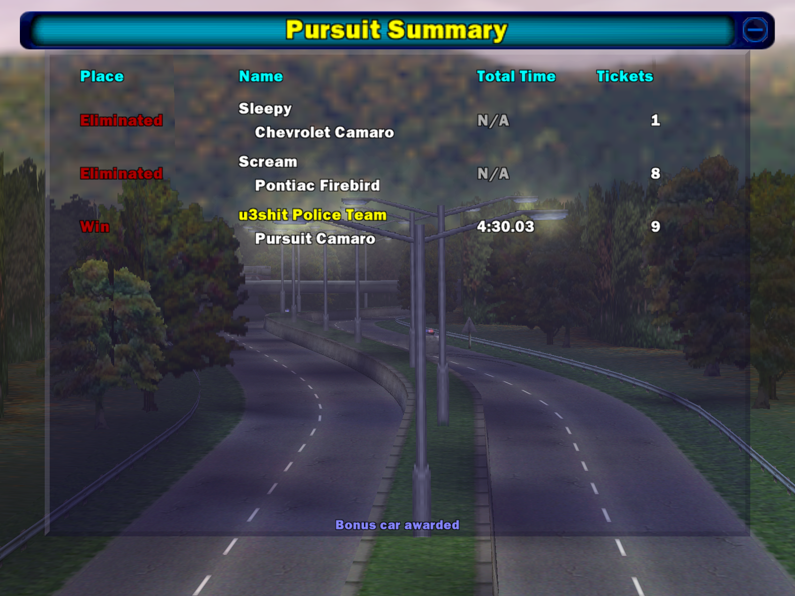 What's more, the rewards are equally useless (with the tournament, you get shitloads of money, but since you already finished the career mode, it doesn't do much; and with the hot pursuit, by being top cop on every NFS4 track you unlock Pursuit Camaro, which is like the second worst car you have in police mode (see update above)).
