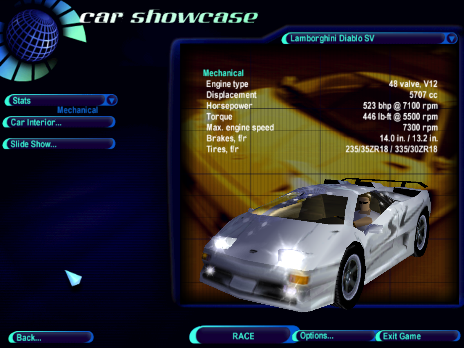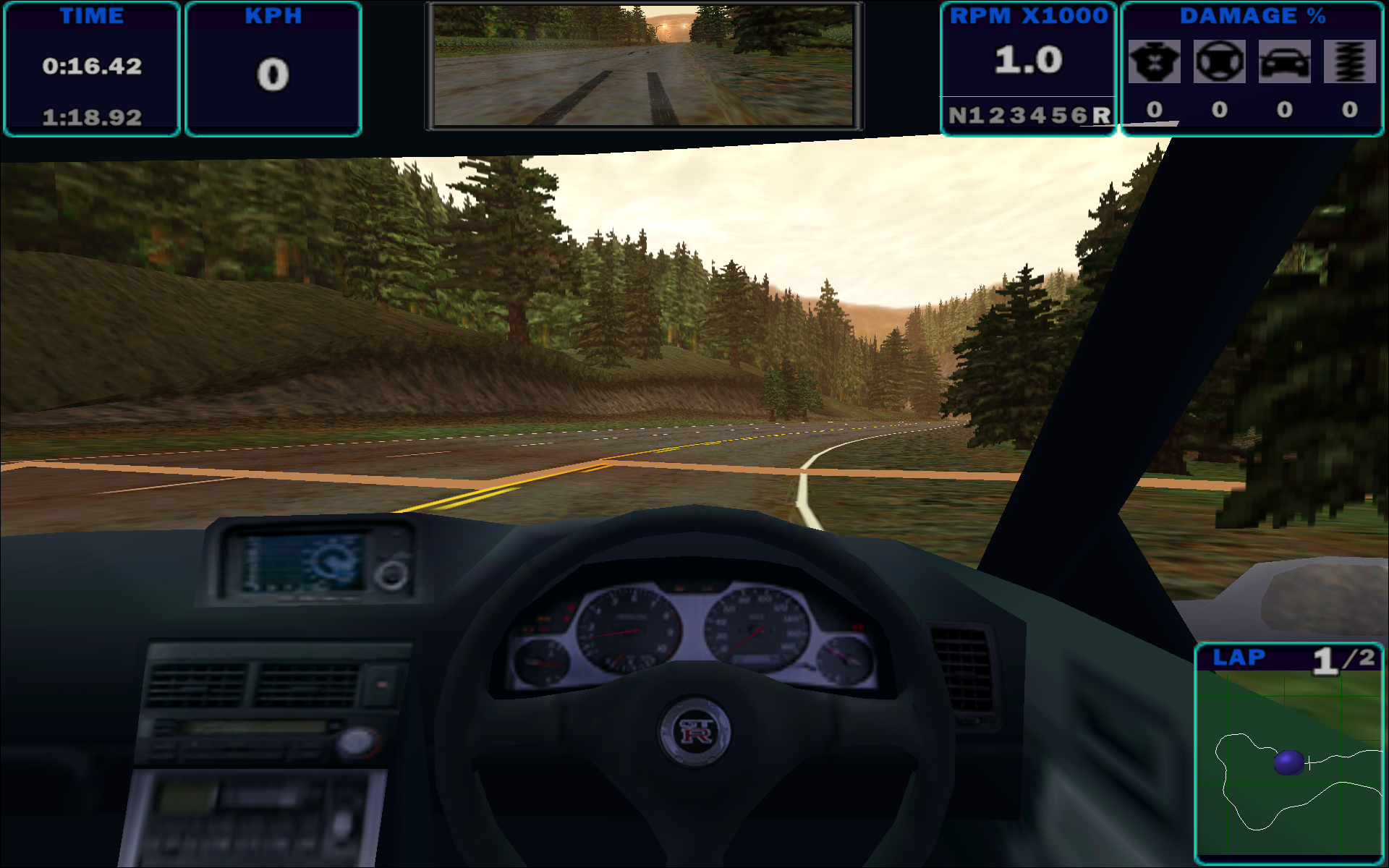 What I like in this game is the attention to detail and random little things you barely find in modern games. I mean, when was the last time you saw a game having dead zone settings? Or 6 camera modes to choose from? Slideshow of each car available in the game? Panorama picture of the car interior? Presentation of each track?!