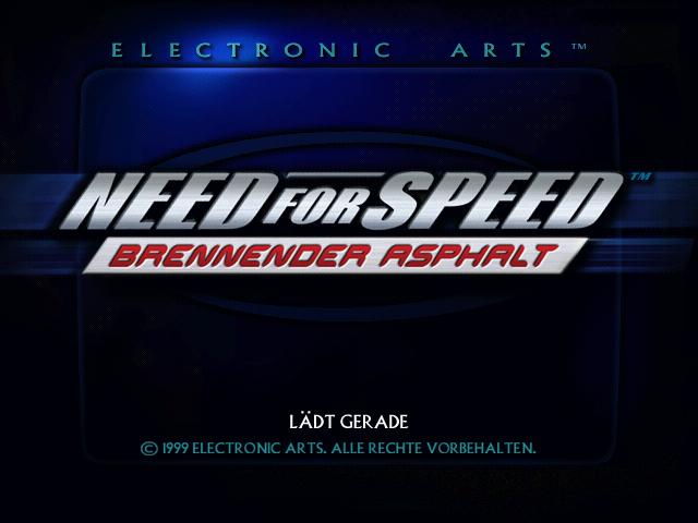 Oh, and one more thing. After the intro ends you see the loading screen... and ow maw Gad! I included NFS3's loading screen, just to have something to compare with. With the old screen, you have the cool 3D NFS3 logo, the NFS text placed over the roman III, over a blueish background, taking inspiration from the police's siren's red-blue colors... And with the new? Originally I wanted to say it's like someone designed it in PowerPoint in 30 seconds, but then Windows 8 came, and we saw how it looks like when they literally design their GUIs in PowerPoint... but still, it certainly looks like some unimaginative diversity hire crap. The old screen had soul, this is just a boring lifeless shell. But I have to admit, the German "Brennender Asphalt" logo looks badass, imagine shouting that title, your saliva splattering all over the place, like it's a song from a metal album. I don't know why did they change the color, though. And the kerning, aaaah! It hurts to look at it.