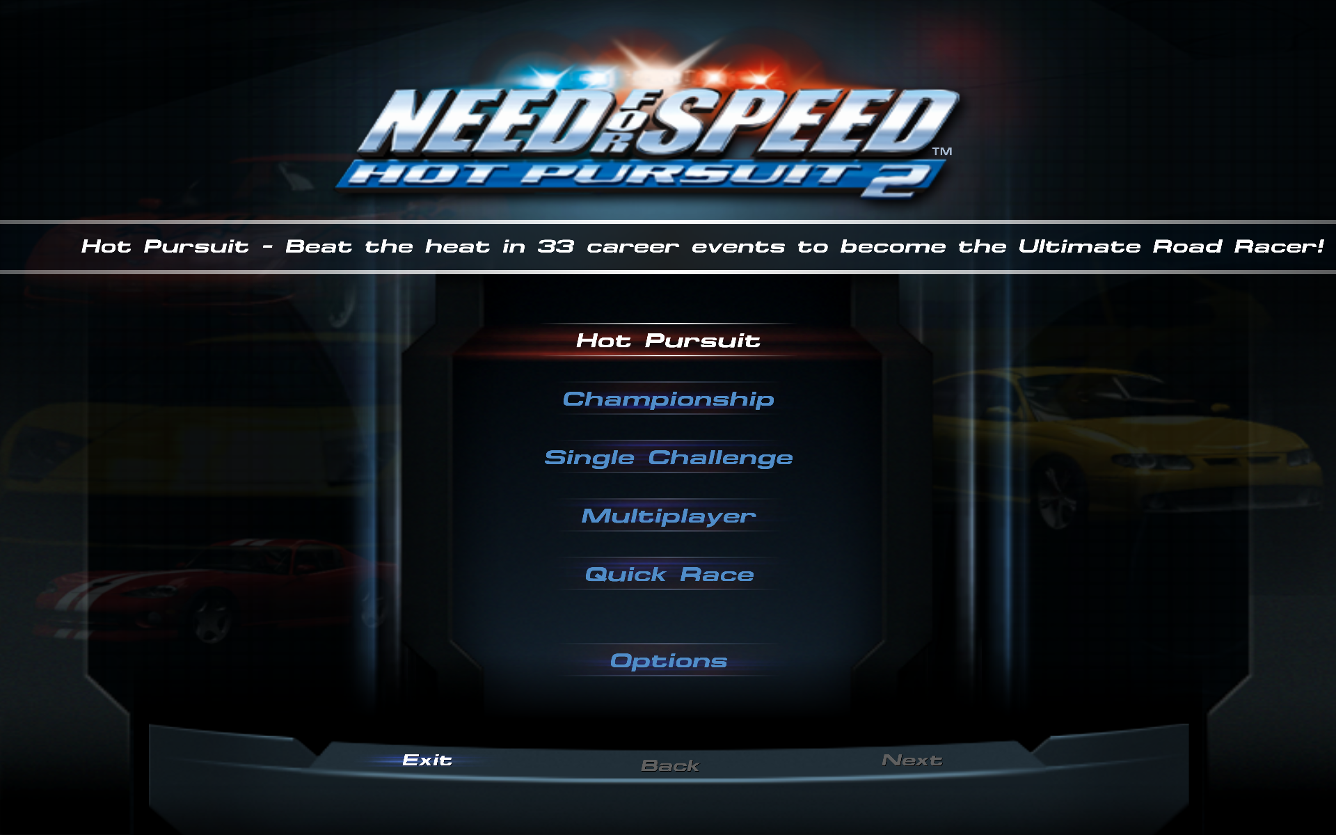 If I could give a subtitle for this post, it would be "A dawn of a new era". But before this post it never occurred to me to have subtitles, and I don't feel like implementing it for just this post... Anyway, another favorite NFS game, having the title Need for Speed: Hot Pursuit 2 (or Need for Speed : Poursuite infernale 2 in France), the 6th game in the series... also where numbering starts to break down. It's HP2, to signify it is a spiritual successor to NFS3 which had the subtitle of Hot Pursuit, while being the 6th mainline game in the series.