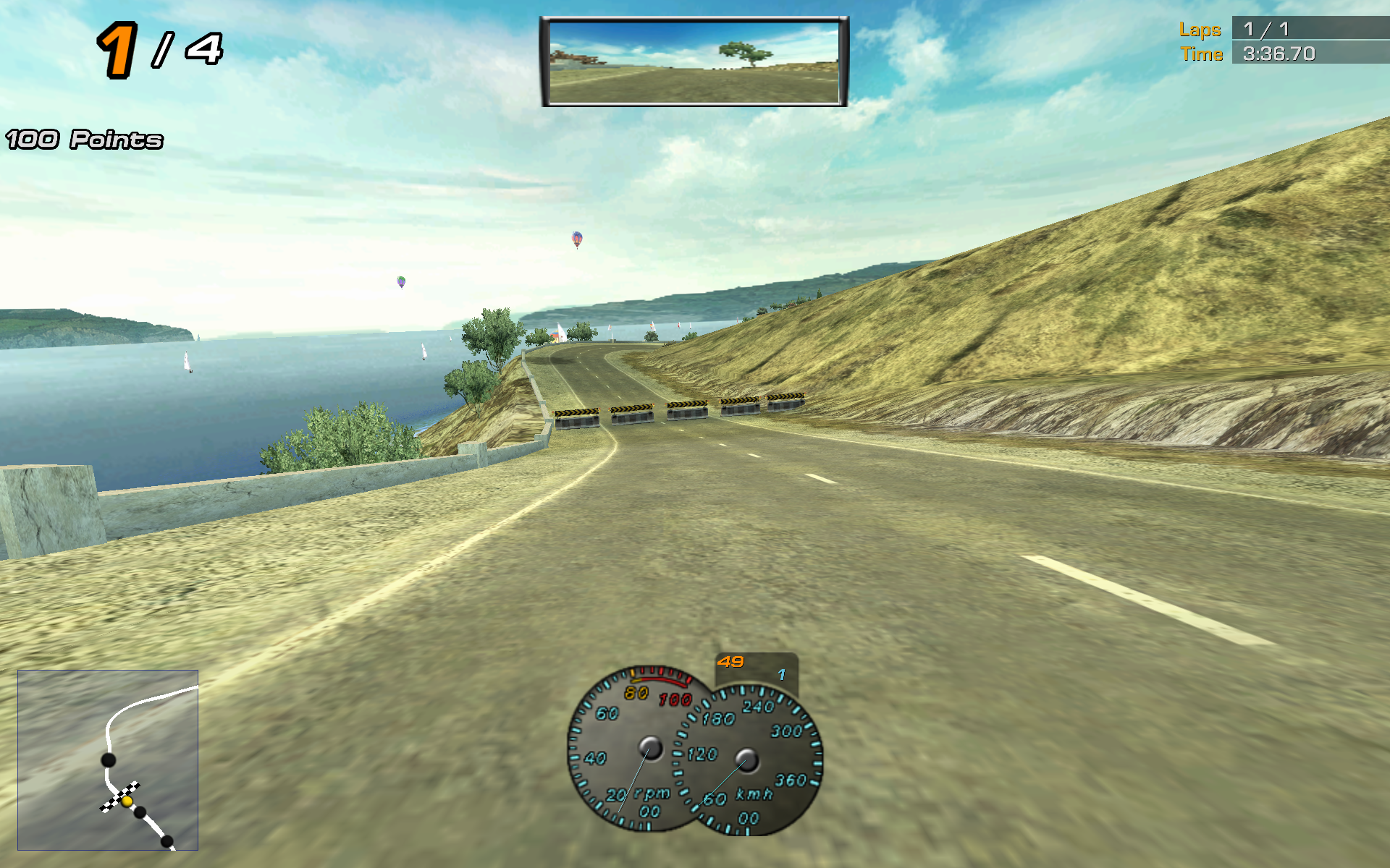 When you finish a race, you get a menu where you can restart the race, view the replay or quit. Replay functionality is nerfed, you can only watch the replay when finishing the race, you can't save it. What's the point? And there's a bug with the end race button, if you push the enter key, it will also register the enter key returning to the main menu. In case you played quick race, the quick race button will be selected initially, and the extra key press will cause HP2 to start another quick race. Interestingly, during the game, the dialog where you have the end race button is the only one where you can use the mouse. Coincidence?